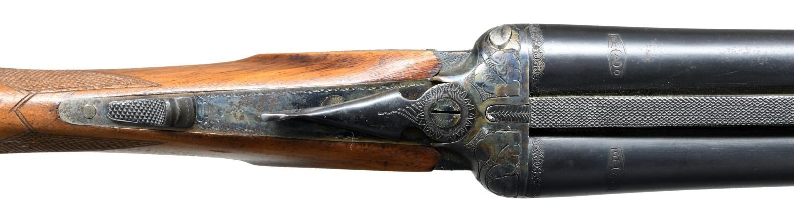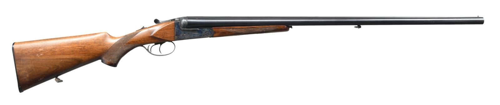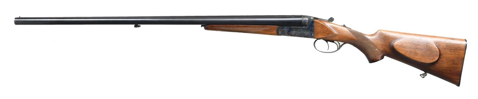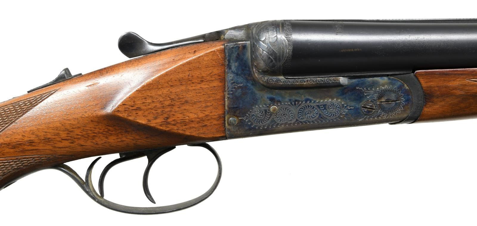 Cal. 16 Ga., 2 3/4". S# YZ9050 (N1 = 1969). Raised rib 28" bbls. w/ bead. Full & mod chokes. Case hardened receiver w/ light engraving. Boxlock action w/ dbl. triggers, extractors & automatic safety. Checkered walnut stock set w/ sling swivels. LOP: 13 1/4" to buttplate. CONDITION: very good blue & case color finished w/ peppery oxidation & marks throughout. Very good wood finish w/ numerous impressions that pierce the finish on buttstock. Good shiny bores w/ fouling & a few sm. dents. PROVENANCE: From the estate collection of Thomas J. Mulligan. (23-1259/MD). CURIO. $400-600.