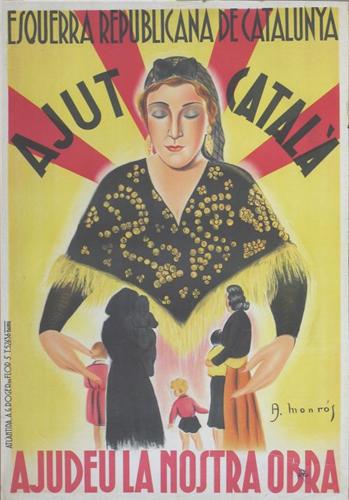 MONROS, A. AJUD CATALA. ESQUERRA REPUBLICANA DE CATALUÑA. (1936 CA.). 100x70cm. (40x27in.). Litografía. A-.