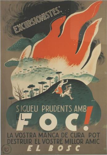 MORA. EXCURSIONITES: SIGUEU PRUDENTS AMB EL FOC!. 1937. 100x70cm. (40x27in.). Litografía. A-. Entelado.