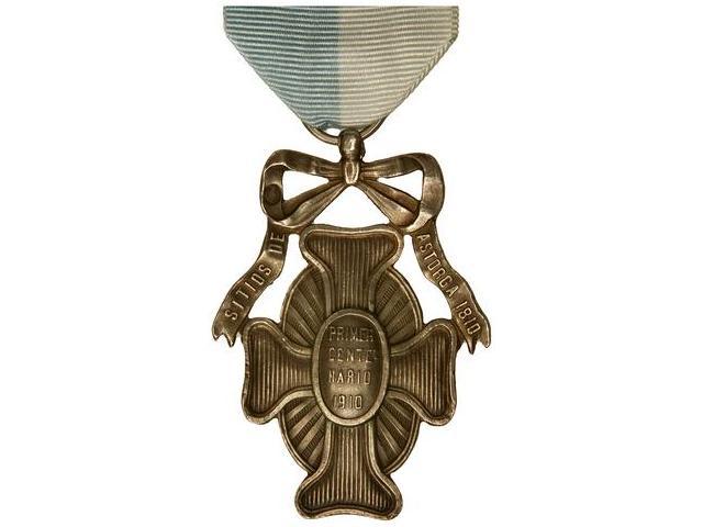 SPANISH DECORATIONS - Centenario Astorga. Categoría Plata. 1910. Metal blanco. Ø 50x36 mm. Con anilla original y cinta. PG-794a. EBC-.
