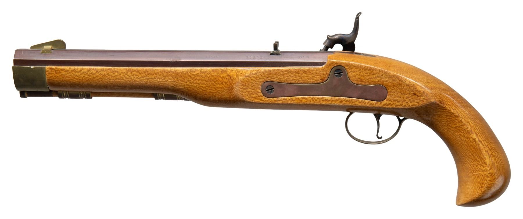 SPANISH JUKAR PERCUSSION PISTOL WITH STAND.