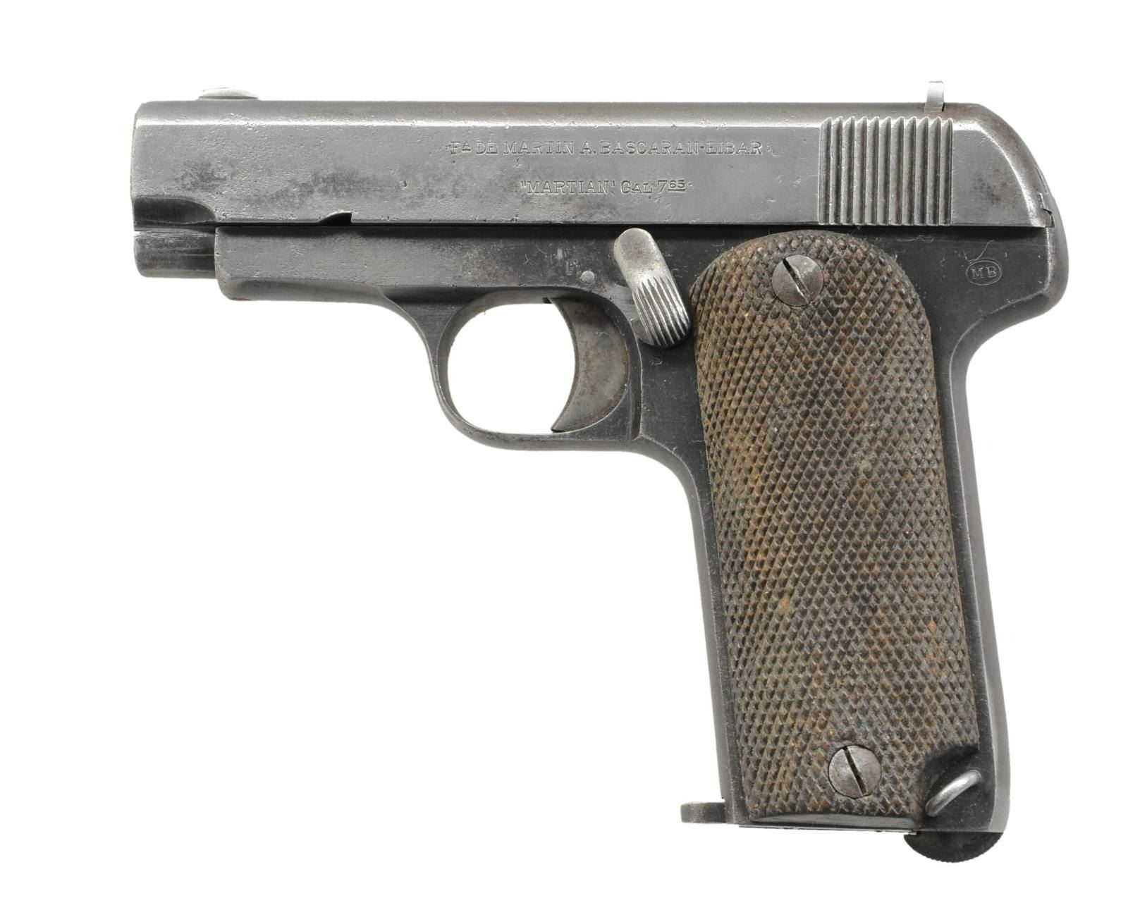 Cal. 7.65mm. S# 10245. Bbl. 3 1/2". A clone of the Spanish made Ruby pistol. Two piece walnut grips. MAGS: (1) 8rd. CONDITION: Slide finish has mostly faded with the frame retaining a higher percentage. Pitting present on the slide with some oxidation on the small parts. Grips show wear otherwise good. Frosted bore with fair rifling. CURIO (23-1837/ZAL) $300-400
