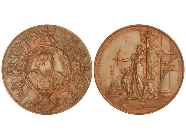 SPANISH MEDALS - Colón. 1892. BARCELONA. Anv.: Medallón central con busto de Colón a derecha, alrededor escenas de su vida. Rev.: Alegoría de la ciudad con corona y león a sus pies, al fondo monumento a Colón y Montjuic. Br. Ø 70 mm. Grabador: ARNAU y CASTELLS. Cru.VS-859. SC.