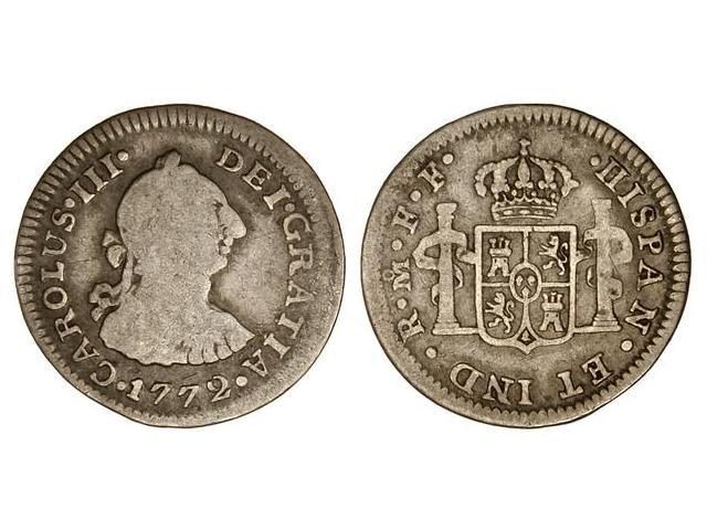 SPANISH MONARCHY: CHARLES III - 1/2 Real. 1772. MÉXICO. F.F. Cal-1764. BC+/MBC-.