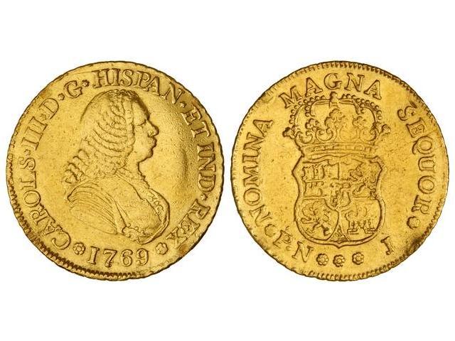 SPANISH MONARCHY: CHARLES III - 4 Escudos. 1769. POPAYÁN. J. (Ha estado en aro). RARA. Cal-351. MBC.
