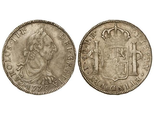 SPANISH MONARCHY: CHARLES III - 4 Reales. 1778/7. POTOSÍ. P.R. (Acuñación floja en reverso). ESCASA. Cal-1181. (MBC+).