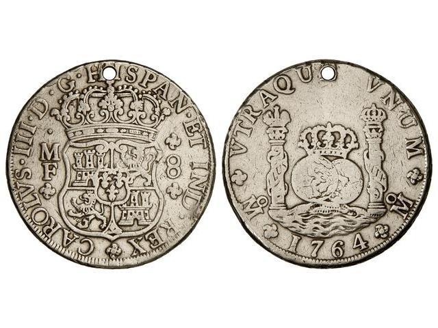 SPANISH MONARCHY: CHARLES III - 8 Reales. 1764. MÉXICO. M.F. Columnario. (Perforación). Cal-899. MBC-.