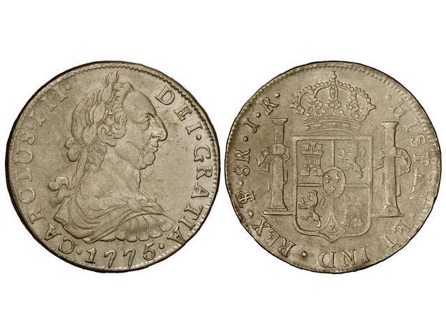 SPANISH MONARCHY: CHARLES III - 8 Reales. 1775. POTOSÍ. J.R. (Limpiada. Leves hojitas en anverso). Cal-975. MBC.