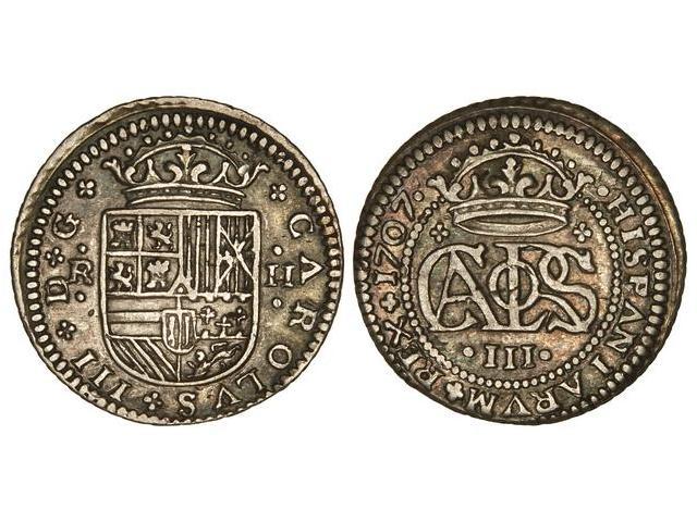 SPANISH MONARCHY: CHARLES III Pretender - 2 Reales. 1707. BARCELONA. Cal-23. MBC+.