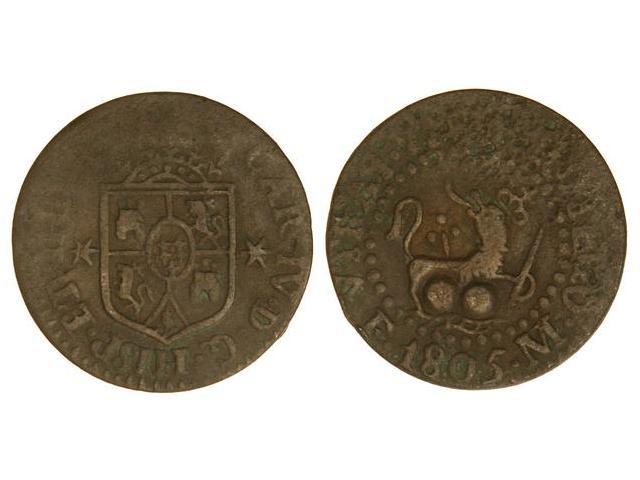 SPANISH MONARCHY: CHARLES IV - 1 Cuarto. 1805. MANILA. Cal-1474. (MBC).