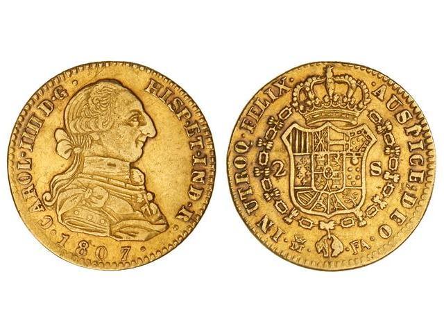 SPANISH MONARCHY: CHARLES IV - 2 Escudos. 1807. MADRID. F.A. 6,75 grs. AU. FALSA de ÉPOCA. Busto de Carlos III. MBC.