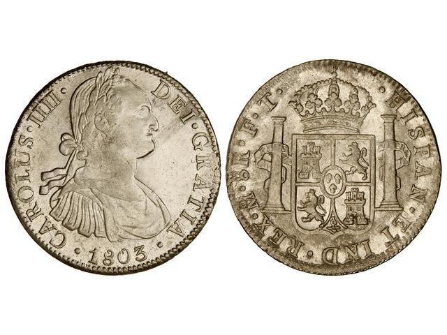 SPANISH MONARCHY: CHARLES IV - 8 Reales. 1803. MÉXICO. F.T. Restos de brillo original. (Acuñación algo floja en parte. Pequeñas rayitas en anverso). Cal-699. EBC.