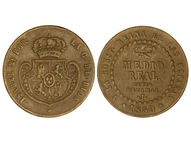 SPANISH MONARCHY: ELISABETH II - 1/2 Real (5 Décimas). 1850. JUBIA. Cal-571. MBC.