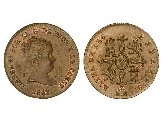 SPANISH MONARCHY: ELISABETH II - 1 Maravedí. 1842. SEGOVIA. Pátina marrón. Restos de brillo original. Cal-567. SC.