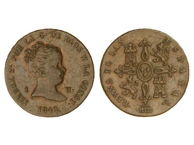 SPANISH MONARCHY: ELISABETH II - 1 Maravedí. 1842. SEGOVIA. (Rayas en anverso). Cal-567. MBC/MBC+.