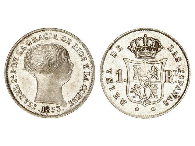 SPANISH MONARCHY: ELISABETH II - 1 Real. 1853. BARCELONA. Cal-398. SC.