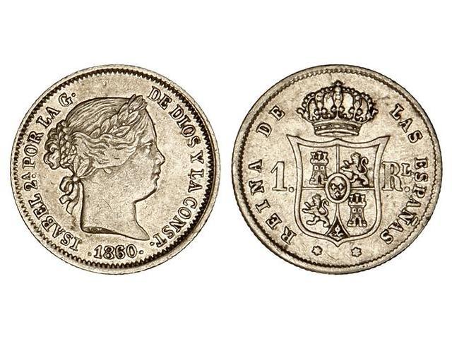 SPANISH MONARCHY: ELISABETH II - 1 Real. 1860. MADRID. Cal-404. MBC+.