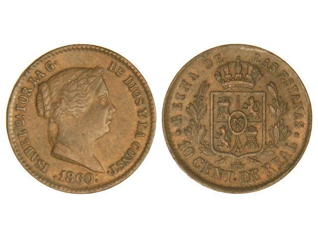 SPANISH MONARCHY: ELISABETH II - 10 Céntimos de Real. 1860. SEGOVIA. Cal-606. EBC+.