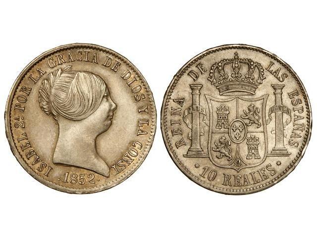 SPANISH MONARCHY: ELISABETH II - 10 Reales. 1852. BARCELONA. (Leves golpecitos en canto). Cal-207. EBC.
