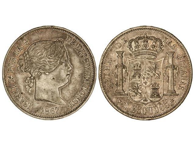 SPANISH MONARCHY: ELISABETH II - 2 Escudos. 1867. MADRID. (Pequeñas hojitas en anverso. Golpecito en gráfila). Cal-204. MBC+.