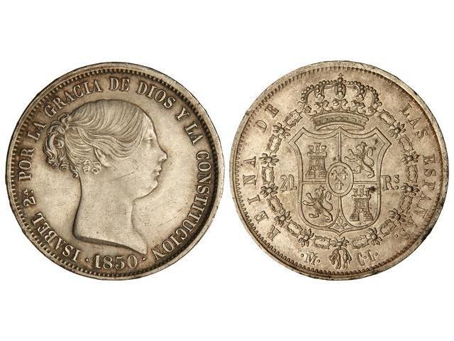 SPANISH MONARCHY: ELISABETH II - 20 Reales. 1850. MADRID. C.L. (Pequeñas rayitas en anverso. Pequeños golpecitos en gráfila). Cal-170. EBC-/EBC.