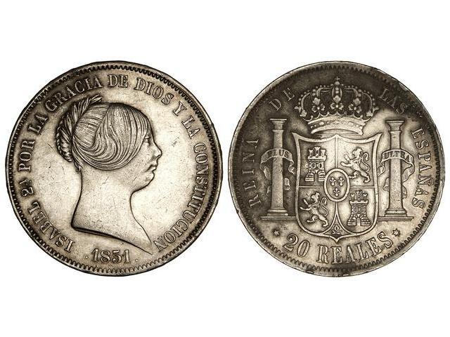 SPANISH MONARCHY: ELISABETH II - 20 Reales. 1851. MADRID. (Pequeños golpecitos en canto). Cal-172. EBC-.