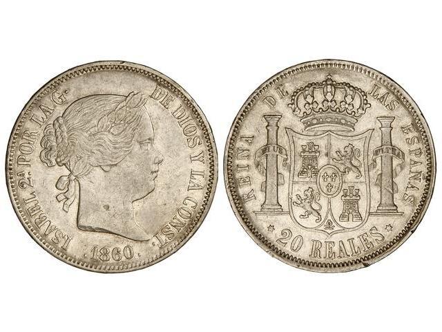 SPANISH MONARCHY: ELISABETH II - 20 Reales. 1860. MADRID. (Pequeñas rayitas y pequeños golpecitos). Cal-182. MBC+.