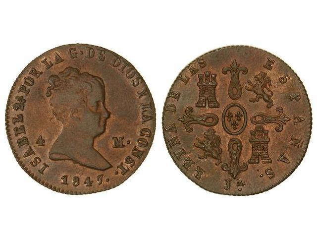 SPANISH MONARCHY: ELISABETH II - 4 Maravedís. 1847. JUBIA. Bonita pátina. Cal-517. EBC+.
