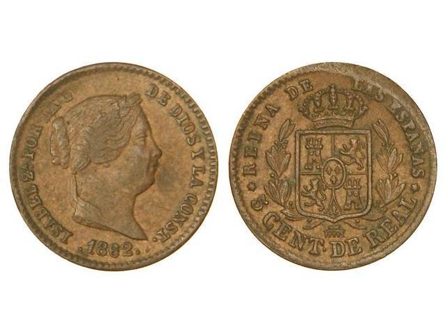 SPANISH MONARCHY: ELISABETH II - 5 Cénitmos de Real. 1862. SEGOVIA. Cal-619. SC-.