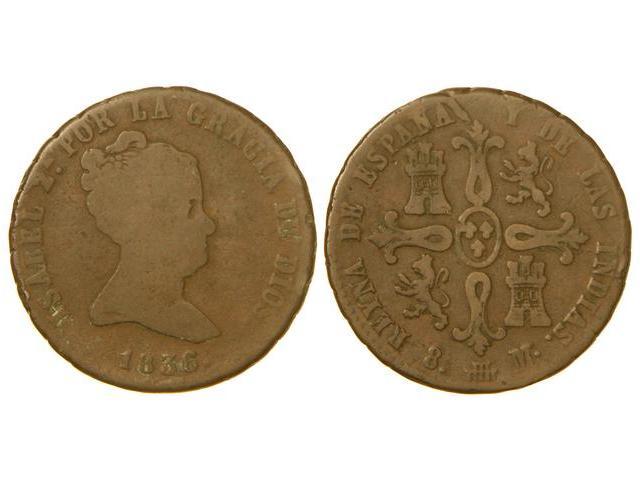 SPANISH MONARCHY: ELISABETH II - 8 Maravedís. 1836. SEGOVIA. Valor en reverso. Cal-491. BC+.