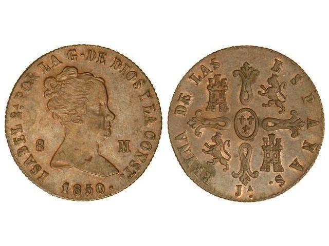 SPANISH MONARCHY: ELISABETH II - 8 Maravedís. 1850. JUBIA. (Pequeña hojita en el cuello). Cal-488. EBC+.