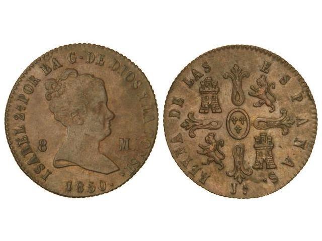 SPANISH MONARCHY: ELISABETH II - 8 Maravedís. 1850. JUBIA. (Pequeños golpecitos en canto). Cal-488. EBC.