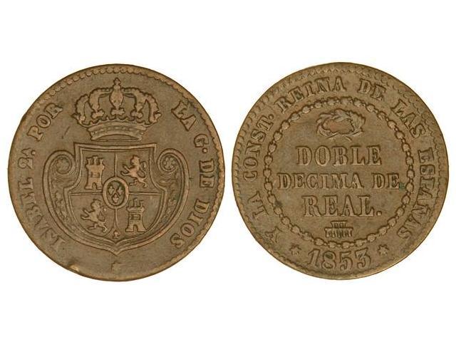 SPANISH MONARCHY: ELISABETH II - Doble décima de Real. 1853. SEGOVIA. Cal-579. MBC.