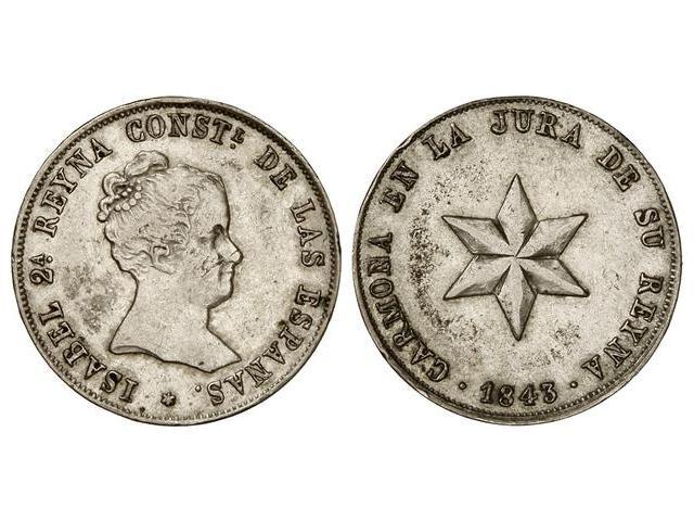 SPANISH MONARCHY: ELISABETH II - Medalla Mayoría de edad. 1843. CARMONA. AR. Ø 23 mm. (Pequeños golpecitos en gráfila). He-6. MBC+/EBC-.