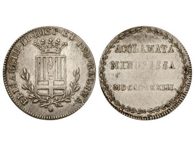 SPANISH MONARCHY: ELISABETH II - Medalla Proclamación. 1833. MANRESA. AR. Ø 26 mm. Restos de brillo original. He-26. EBC-.