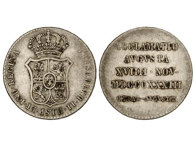 SPANISH MONARCHY: ELISABETH II - Medalla Proclamación. 1833. ZARAGOZA. AR. Ø 25 mm. He-36. MBC-.