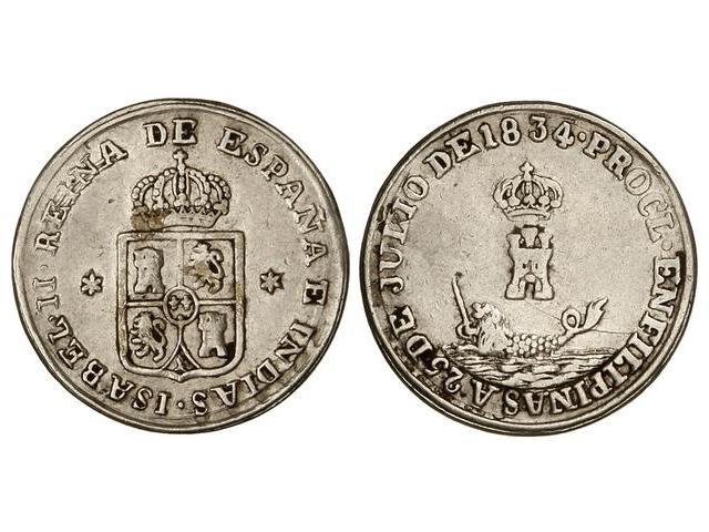 SPANISH MONARCHY: ELISABETH II - Medalla Proclamación. 25 Julio 1834. MANILA. AR. Ø 23 mm. He-62. MBC.