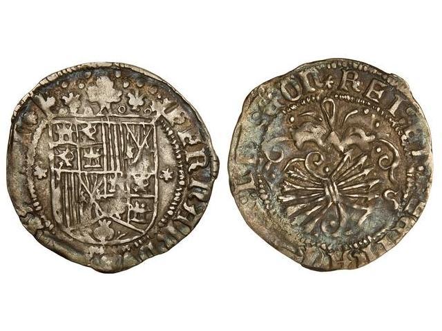 SPANISH MONARCHY: FERDINAND AND ISABELLA - 1 Real. SEVILLA. Anv.: -escudo-. Rev.: S. Haz de 6 flechas. Pátina irisada. Cal-367. MBC+.