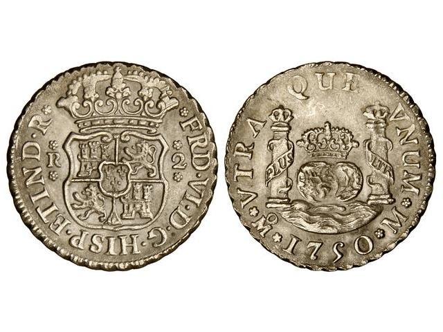 SPANISH MONARCHY: FERDINAND VI - 2 Reales. 1750. MÉXICO. M. Cal-490. EBC.