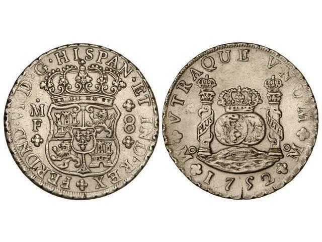 SPANISH MONARCHY: FERDINAND VI - 8 Reales. 1752. MÉXICO. M.F. Columnario. (Limpiada). Cal-329. MBC+.