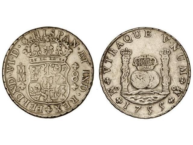 SPANISH MONARCHY: FERDINAND VI - 8 Reales. 1755. MÉXICO. M.M. Columnario. Cal-338. MBC/MBC-.