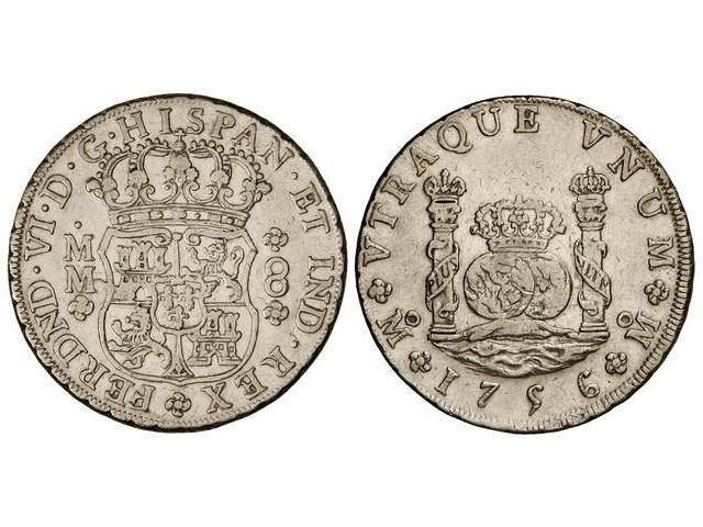 SPANISH MONARCHY: FERDINAND VI - 8 Reales. 1756. MÉXICO. M.M. Columnario. Cal-340. MBC.