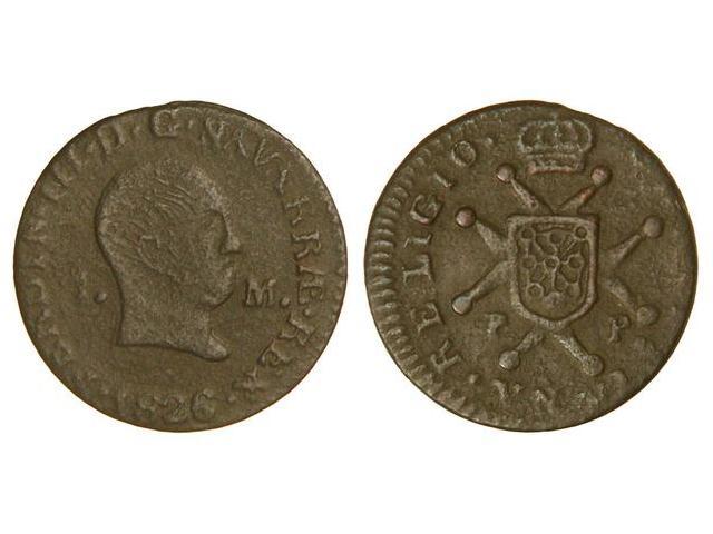SPANISH MONARCHY: FERDINAND VII - 1 Maravedí. 1826. PAMPLONA. Cal-1655. MBC.