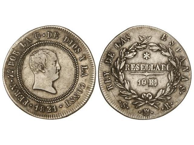 SPANISH MONARCHY: FERDINAND VII - 10 Reales. 1821. MADRID. S.R. Módulo 4 Reales. RESELLADO. Cal-762. MBc.