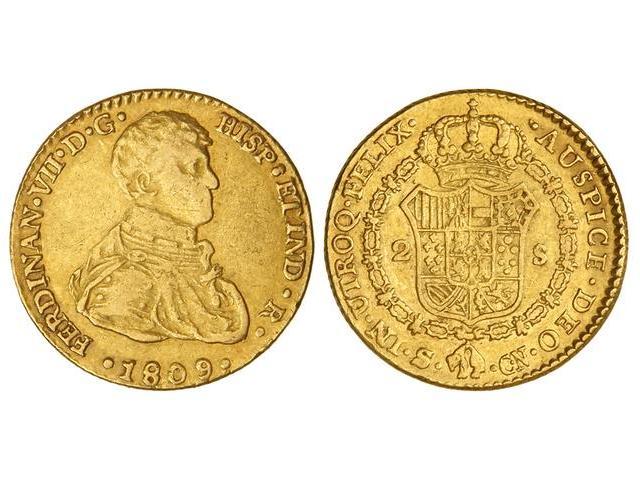 SPANISH MONARCHY: FERDINAND VII - 2 Escudos. 1809. SEVILLA. C.N. ESCASA. Cal-255. MBC.