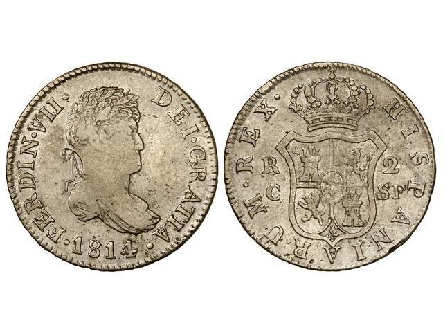 SPANISH MONARCHY: FERDINAND VII - 2 Reales. 1814. CATALUNYA. S.F. Cal-861. MBC-/MBC.