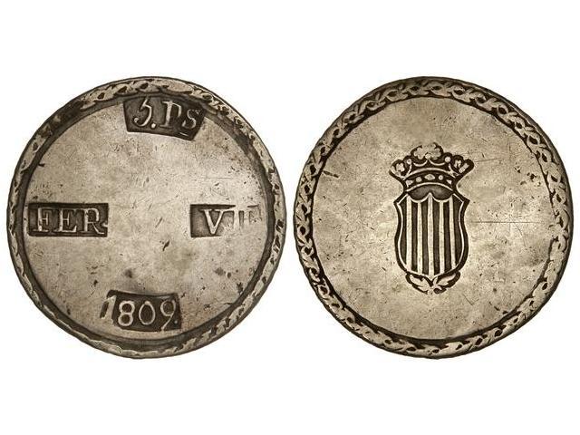 SPANISH MONARCHY: FERDINAND VII - 5 Pesetas. 1809. TARRAGONA. Cal-653. MBC.
