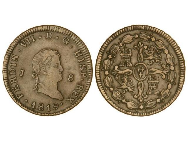 SPANISH MONARCHY: FERDINAND VII - 8 Maravedís. 1819. JUBIA. Cal-1553. MBC-/MBC+.