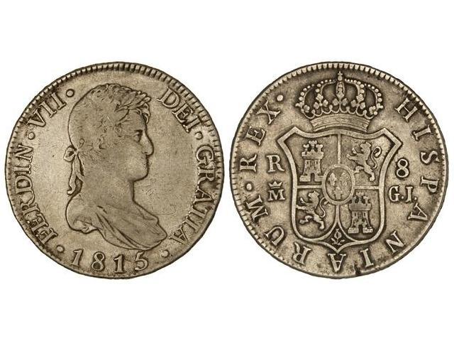 SPANISH MONARCHY: FERDINAND VII - 8 Reales. 1815. MADRID. G.J. (Rayitas). Cal-504. MBC-.