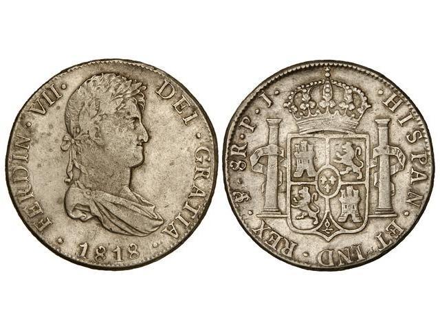 SPANISH MONARCHY: FERDINAND VII - 8 Reales. 1818. POTOSÍ. P.J. (Pequeños golpecitos). Cal-607. MBC.